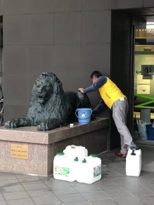 向かいから引っ越してきたライオン像も水拭き・からぶきでキレイになりました!